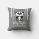 Ett gullig och för sötsakpersonligbebis för födelse meddelande kudder med en bebispanda som björnen i blöjor som rymms samman med en blöja, klämmer fast innehav, en grön bambufor i henne räcker. Det sitter lyckligt i mittet av en gul bambuskog på en grå bakgrund. Skräddarsy det till den spelar ingen roll något att säga dig önskar - bebis namn, födelsedatum, tid av födelse, väger och höjd. Perfekt för en pojke- eller flickabarnkammare. Konstverk© Chrissy H. Studio, LLC. All reserverad rättigheter.