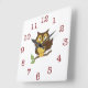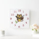Det gulliga ugglabarn vägg-tar tid på/kvadrerar fyrkantig klocka