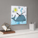 Denna gulliga valdesign presenterar en tecknadvalsimning i vatten med solen och fåglar över. Underbar gåva för ditt barn. Göra perfekt för din barnsovrum eller playroom.