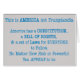 I blå text står det: "Det här är Amerika, inte Trumplandia. Amerika har en konstitution, en rättighetsförklaring och en uppsättning lagar som alla ska följa, oavsett hur rik eller mäktig du verkar vara."