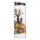 Den här roligten Halloween-tumlaren har en väg som leder till ett hemsökt hus. Det är invändigt med jack o'lanternor och ett gammalt träd har bara några löv lämnat på det. Fladdermus flyger i himmel Typografi säger "Tis the Season to be spooky". På baksidan finns en mall där du kan anpassa den med ditt namn.