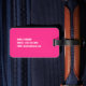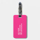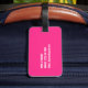 Den här "lätta att upptäcka" moderna och feta bagagetaggen har ett typsnitt för contemporary som fångar upp öga och ett nytt rosa färg. Anpassadet längst bak och längst fram och samma rosa färg upprepas längst bak. Texten längst bak på kortet är fullt anpassade. Lägg till och/eller ta bort som du vill.