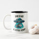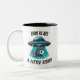 En fantasifull kaffemugg design med en fisk som strålas upp från havet av en UFO, med texten "Det här är lite för fiskt." Illustrationen kombinerar lekfulla science fiction-element med oceanisk charm, vilket gör den perfekt för de som älskar humor, utomjordisk mystik och marina teman.