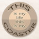 Rund underlägg med utskrift "Det här är mitt liv. Det här är min UNDERLÄGG". Lugn, garvat färg. Ta med dig din egen underlägg till behållan på din egen drink!