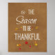 Det här är säsongen för att vara tacksam citat som Poster utskrifter med vacker rustik brun bakgrund och accenter från blommigten löv. Lothetsoffertutskrifter för Thanksgiving, jul och hela året.