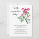 Planerar du en babydusch på vintern? Beundra din familj och dina vänner med den här snyggten julinbjudan. Det är dekorerat med vattenfärgsmistletoe och rött rosett band. Det står "Det här är säsongen för baby!" i elegantens manustypografi. Enkelt anpassade. Ursprunglig vattenfärg © Michele Davies.