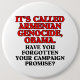 Obama är en sådan liar. Stunder som delta i en kampanj, lovade han upprepade gånger, till appellen det armeniska folkmordet vad det var: folkmord. Men nu har det som han har haft åtskilliga tillfällen att göra precis det, honom, vägrat för att följa igenom och i stället att opting till appellen det saker liksom "en av de värst grymheterna av det 20th århundradet och "ett förödande kapitel" i historia. Uttryckligt dina känslor med denna anti-Obama merchandise: Den har kallat det Armenier folkmordet, Obama. Har du glömt ditt kampanjlöfte?