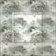 En japansk konst mönster med en blandning av lätt grädde och mjuk grönt, med vatten-reflektioner för utrymmen som spas, yoga studios, meditationsrum eller för inbjudningar till personliger.