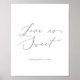Detta känsliga silver kärlek är ett sött bröllop-tecken är perfekt för ett modernt bröllop. Den romantiska minimalistiska designen har fin och elegant silver grått-typografi på vit bakgrund med ett rent och enkelt utseende. Anpassa ordalydelsen till att säga vad du vill!