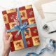 Festive Red and Gold Foil design China Year of the Horse Gift Wrapping Papper. De kinesiska tecknen på mönstret är ett Horse-tecken i den kinesiska Zodiac- och Lycka till-kinesiska symbolen. Matchningskort och gåvor finns tillgängliga under det kinesiska nyåret/året för vår butiks hästkategori.