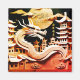 Origami stil för en dragon in i en gammal asiatisk stad i papper + gyllene 2024 + "Dragens år" + guldfärgat önskemål på kinesiska. Design på kvadratisk magnet. Matchande hälsningskort, vykort för helgdag, klistermärke och mer snart. Perfekt för Kinas nya år i draken 2024.