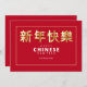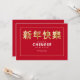 Ett snyggt kinesiskt nyårskort med kinesiskt skrivande mot fetstilt röd bakgrund med guld, tunt ram. PIX.<br/>() Kortet är enkelt att anpassa med text, teckensnitt, färg, pappra formalternativ och val av sex pappra typer.<br/>() Inte exakt vad du är tittar för? Alla våra produkter kan vara designad anpassningsbar för att uppfylla dina behov utan kostnad för extra.<br/>() Kontakta oss helt enkelt på askcottonlamb@gmail.com.<br/>() Samordna tillgängliga produkter: Fråga oss bara!"