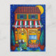 En lekfull, färglös scen av en romantisk, mysigt, liten måne-belyst trakoria med två ökända katter som målar motif av Lisa Lorenz på ett postkort.