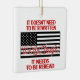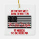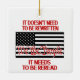 Ovanpå en svart och vit bild av den amerikanska flagga i rött står ord "We the People". Ovanför står det: "Det behöver inte skrivas om." Under flagga står det: "Det måste läsas om." Bilden skrivs ut på båda sidor om dekorationen.