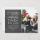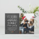 Helgdag-fotokortsdesign har en vintage rustik stil med "Det är den mest underbara tiden på året" blandad typografi, en accent på julgrey och en svart kritersbakgrund med ett texturerat utseende.