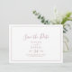 Det minimalistiska vågrät ro guld sparar datumkortet är perfekt för ett enkelt bröllop. Den moderna romantiska designen har klassiskt ro guld och vit typografi parad med en rografi av rustik men elegant med vintage handskrivet stil. Anpassade i alla färg. Behålla designen enkel och elegant, som den är, eller anpassa den genom att lägga till egna bilder och teckningar.