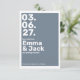 Lägg märke till din speciella dag med den här moderna snyggten och spara datumkortet, som är designat för att göra ett djärvt intryck med sin träffande visning med lodräts vita datum på en sofistikerad platta blå bakgrund. Den rena, minimalistiska layouten har contemporary, trendigets vita blocktypografi som utmärker sig och skapar en skarp och minnesvärd perfekt för dagens moderna bröllop. Spaciös formatering och vass linjer-behålla ger en ny och oklanderlig utformning, medan paletten tillför lite finslipad elegans. Det här är perfekt för par som vill ha ett sammanhängande och trendfritt estetiskt system, vilket sparar datumet perfekt med matchande inbjudningar och OSA kort, vilket garanterar en enhetlig och polerad bröllop-stationär svit. Resultatet är ett enkelt tillkännagivande av chicen som anger tonen för en contemporary firande fylld med stil och avsikter.