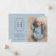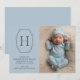 Inför ert värdefulla nyfödda i stil med en chic och ett modernt födelsebesked. Med ett snyggt monogram med ditt baby som första del inneslutet i ett elegant geometriskt ram. En minimalistisk och sofistikerad design på blå bakgrund. Anpassa det här kortet med ett foto av ditt nyfödda lodrät porträtt och redigera sedan textmallarna för ditt eget meddelande från anpassningsbar baby. Perfekt för att dela nyheten om din lilla ankomst med nära och kära..