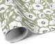 En mönster för vita och svarta blommor över en grönts bakgrund.