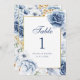 Styr dina gäster i stil med det här elegant bröllop-bordsnumret-kortet från Modern Blue and Guld Blommigt Collection. Designat med mjuka blommigtar i dammiga blått och gyllene nyanser, ett förfinat guld gräns och klassisk serif-typografi, ger det här kortet ett tidlöst skönhet åt bord som tar emot. Anpassa till namn och bröllop-datum för en samordnad och professionell avsluta. En vacker detalj som förbättrar ditt sittande arrangemangt samtidigt som du kompletterar din totala bröllop-décor.