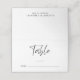 Modern bordsnummer-platskort med "Bord" i ett chic-skript och tomt linjer för att du ska kunna fylla i bordsnumret och namnen på dina gäster. Lägg till ditt första namn och mottagningsdatum på baksidan.