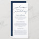Det moderna Bröllopsprogrammet med minimalistiskt marinblått skript. Anpassa detta enkla och moderna bröllopsprogram till er minimalist eller elegant bröllop. Mångsidig design är perfekt för alla bröllop-teman med din serviceordning och tidslinje, bröllopsfest och tack.