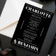 Det här moderna och djärva bröllopsprogrammet kombinerar minimalistisk design med en elegant svart och vit palett som ger en sofistikerad beröring till dina ceremonidetaljer. Det här programmet har ren vit typografi på rikens svarta bakgrund och är både snyggt och funktionellt. För contemporary bröllop är det perfekt att se till att gästerna kan följa med utan problem samtidigt som de kompletterar temat elegant bröllop. Utformningen strejkor perfekten mellan enkelhet och djärvhet, skapar det ett utmärkt val för din stora dag.