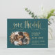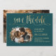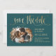 Modern teal och guld bröllop-fotot sparar datumkorten med ett typsnitt för eleganten. Anpassa enkelt det här fotokortet med information om bilder och bröllop.