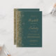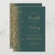 Den här elegantens lämnat kant har en modern bröllopsinbjudan i guld i glitter. Anpassadet kombinerar handskrift, rityta och kursivt typsnitt med guld-färgad mot en mörk grönt bakgrund. Den omvända sidan har en matchande grönt- och guld glitter-design.