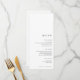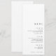 Denna minimalistiska svarta och vita bröllop-meny är i dag designad för att elegant bord ska kunna ställas in utan problem. Varje kort har en ren utformning med en enda kurs - perfekt för att placera en på varje plats som gäst. Texten är genomtänkt i linje med grund och lämnar öppet utrymme överst för att lägga till namn bricka, vax sälar eller dekorativa accenter. Den här utformningen är enkel att förfina och kompletterar alla bröllop stil med dess balanserade typografi och tidlösa sofistikering.