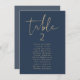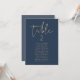 Bordsnumrets sittande diagram har ett edgy handskrivet typsnitt och modern minimalistisk utformning med marin blå kombination och guld färg. Ändra enkelt antalet och namn tillsammans med hela färg så att det stämmer överens med din händelse.