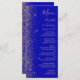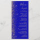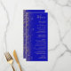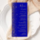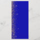 Den moderna bröllop-menyn på den lämnat kant i eleganten har en guld faux glitter-design. Anpassadet kombinerar handskrift, rityta och kursivt typsnitt med blek guld färgad mot royalets blå bakgrund. Den omvända sidan har en passande utformning av royalet blue och guld glitter.