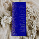 Det moderna bröllopsprogrammets lämnat kant i eleganten har ett utkast från ro guld faux glitter. Anpassadet kombinerar handskrift, rityta och kursivt typsnitt i blek ro färgad med royalets blå bakgrund.