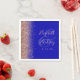 Den lämnat kant i denna elegant moderna bröllop-servetter har en ro faux glitter-design. Anpassadet kombinerar handskrift och typsnitt av blek ro-färgad över ett stort område på royalets blå bakgrund.