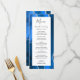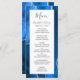Den här eleganten har den moderna bröllop-menyn en vattenfärgsblå royal blå agate-bakgrund som trimmas med silver faux glitter. Texten visas i elegant, grått-handskrift och typsnitt på en vit rektangel. Den agate-designen upprepas på motsatt sida.