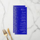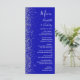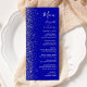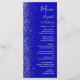 Den moderna bröllop-menyn på den lämnat kant i eleganten har en silver faux glitter-design. Anpassadet kombinerar vit handskrift, tryckplåt och kursiv typsnitt på royalets blå bakgrund. Den omvända sidan har en passande utformning av royalet blue och silver glitter.