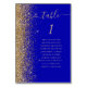 Det moderna bordsnumret i bröllop har ett faux-gräns i guld i den här elegantens lämnat kant. Ord "bord" visas i guld-färgadens visuella handskriftsskript på royalets blå bakgrund. Lägg till namnen för de gäster som tilldelats varje bord.