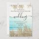 Modern enkel faux-vattendjup guld handflatan med enkel typografi, ett trendig och ett tropiskt bröllop-tema på handflatan träd löv med ett foto av en tropisk strand