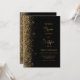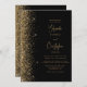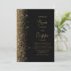 Den här elegantens lämnat kant har en modern bröllopsinbjudan i guld i glitter. Anpassadet kombinerar skript av guld-färgad och sans serif typsnitt på en svart bakgrund. Den omvända sidan har en matchande design för svart och guld glitter.