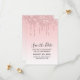 Ett modernt bröllop spara datum-kort för trendig. Bakgrunden har en bild av mousserande droppfaux-glitter längs överkanten. Resten av bakgrunden är en delikat pastellfärgad övertoning vid rosa färg.