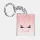 Modern Elegant, smidig och Trendig Rosa nyckelkedjepersonlig i Glitter med ditt namn. Punglande Eyelash. Snyggt Script.