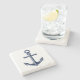 En trivet med ett unikt nautiskt tema. Det presenterar en ankra som centreras i mittet i en vibrerande marin- och vitfärgintrig.