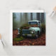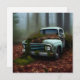 Coolans platta hälsningskort för vintage lastbil älskare har en AI-genererad digital konsmålning av en övergiven vintage blå lastbil i en skog, som nu är täckt med moss och löv. Tom på baksidan och redo för hälsning, födelsedagspresent önskemål med mera.