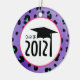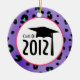 En prydnad som presenterar en purpurfärgad leopardtryckbakgrund. "Klassificera av 2012" text som inre rosor cirklar med studentmössaillustrationen.