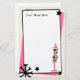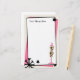 bildar retro inspirerad brevpapper för 50-talvintage med en illustration av en rosa- och leopardtryckklänning på den nedersta höger. Svart rosor och vit centrerar desgin och dekorativa stjärnor. Personifiera med ditt namn på bästa.