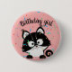 Gullig svartvit katt som strilas med konfettiar. Födelsedagflickaordstäv. Roligt knäppas för party eller skolar.