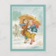 En charmerande vintage, två flickor under ett stort paraply, modiga vintervädret och går i en storm i snö och verkar också vara verkligen som njuter av det! En huggspray sluter bild. Ändra texten till kostym efter behov.