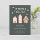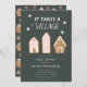 Rustiska och moderna julnöjesbabyduschar för en flicka med hand plockade som illustrerar gingerbrödhus med rosa frostningar. I texten står det "det tar en by".