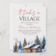 Gratulerar till att din lilla vän kommer att komma med den här mysiga inbjudan till babydusch. Med en charmerande byscen i byn med gräs träd och ett varmt och välkomnande hus, fångar den här utformningen på ett vackert sätt andan i tillsammans med mottot "Det tar en by". Perfekt för vintermöten, den här inbjudan blandar säsong charm med ett hjärtligt budskap, skapar det idealiskt för föräldrar att omges av familj och vänner. Anpassa enkelt med din händelseinformation för en unik och minnesvärd beröring.