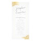 Guld faux foil handflatan träd löv eller fronder med ett unikt modernt typsnitt på ett program för giftermål på en chic. Bilden ser också lite som fjädrar. OM NÅGOT INTE SER UT: Klicka på ANPASSA om du vill ändra typsnitt, ordna text och markera valfri bakgrund färg för att samordna med ditt elegant-badbröllop. Besök vår designerbutik för att se fullt.